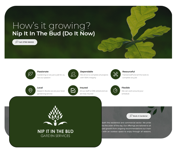 Nip It in the Bud offers complete garden transformation and maintenance services. They wanted a professional online presence that would highlight their process, from initial consultation to stunning results, while encouraging visitors to book a site survey.