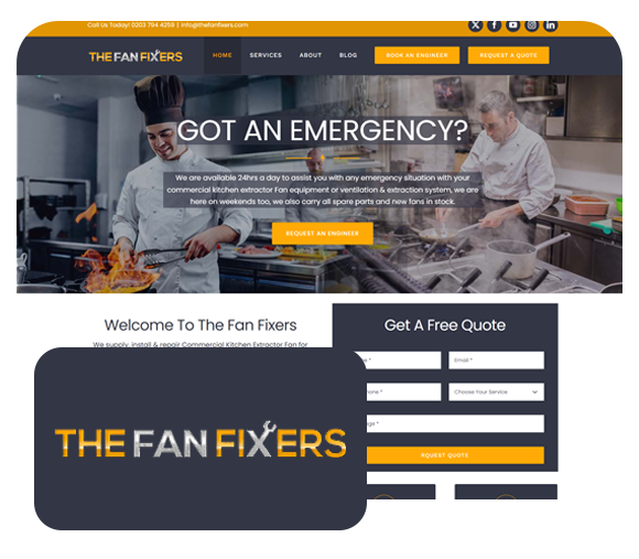 Fan Fixers, a local repair and maintenance service, needed a fast and reliable online platform to handle emergency engineer bookings. Their old system wasn’t mobile-friendly and lacked instant response capability, leading to missed inquiries.